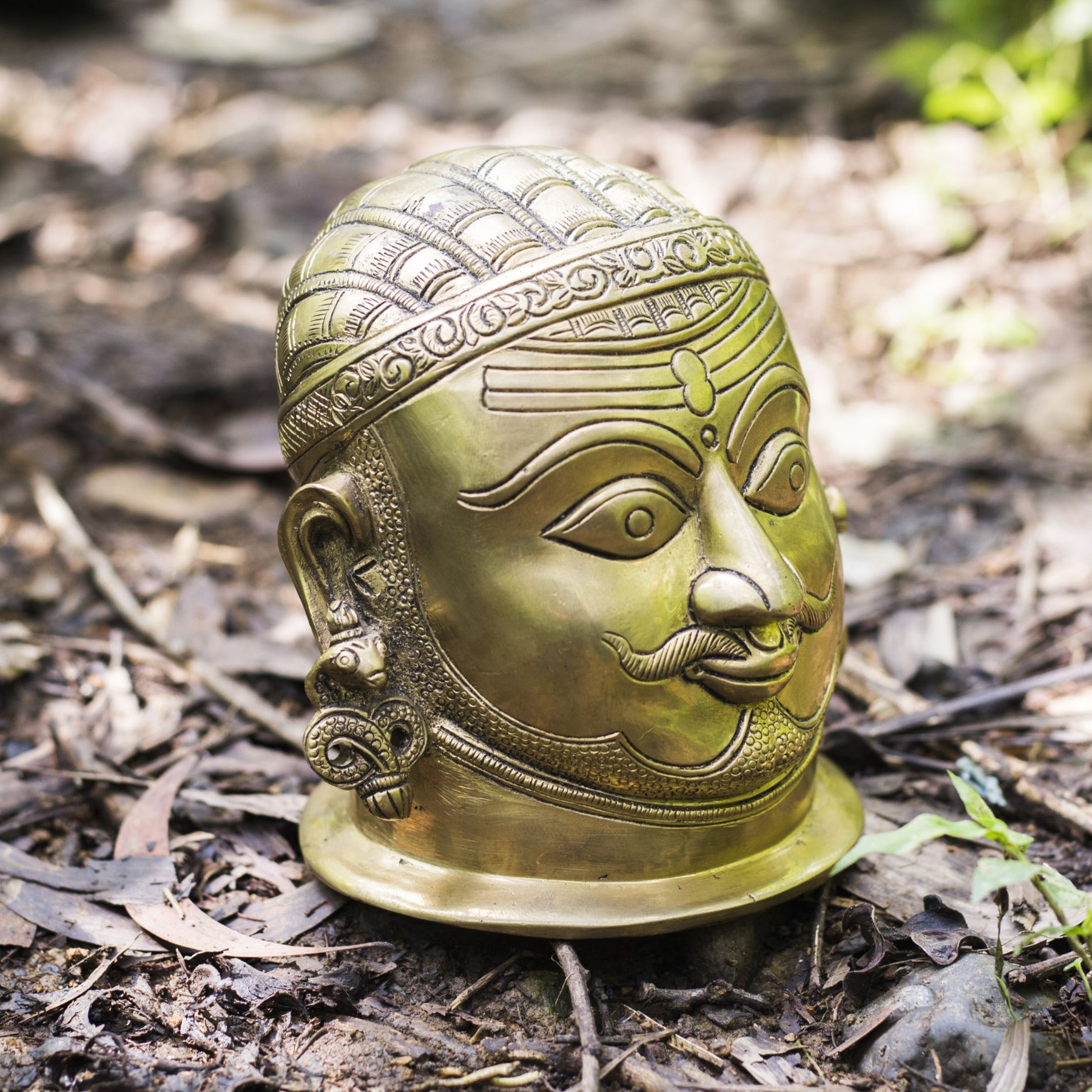 An ornate life sized Shiva head with very fine work. The detailing on this piece is stunning starting from the finesse in the crown, the deep expressive eyes, fine bold moustache, Naga earrings. A statement piece that is sure to capture anyone's interest.