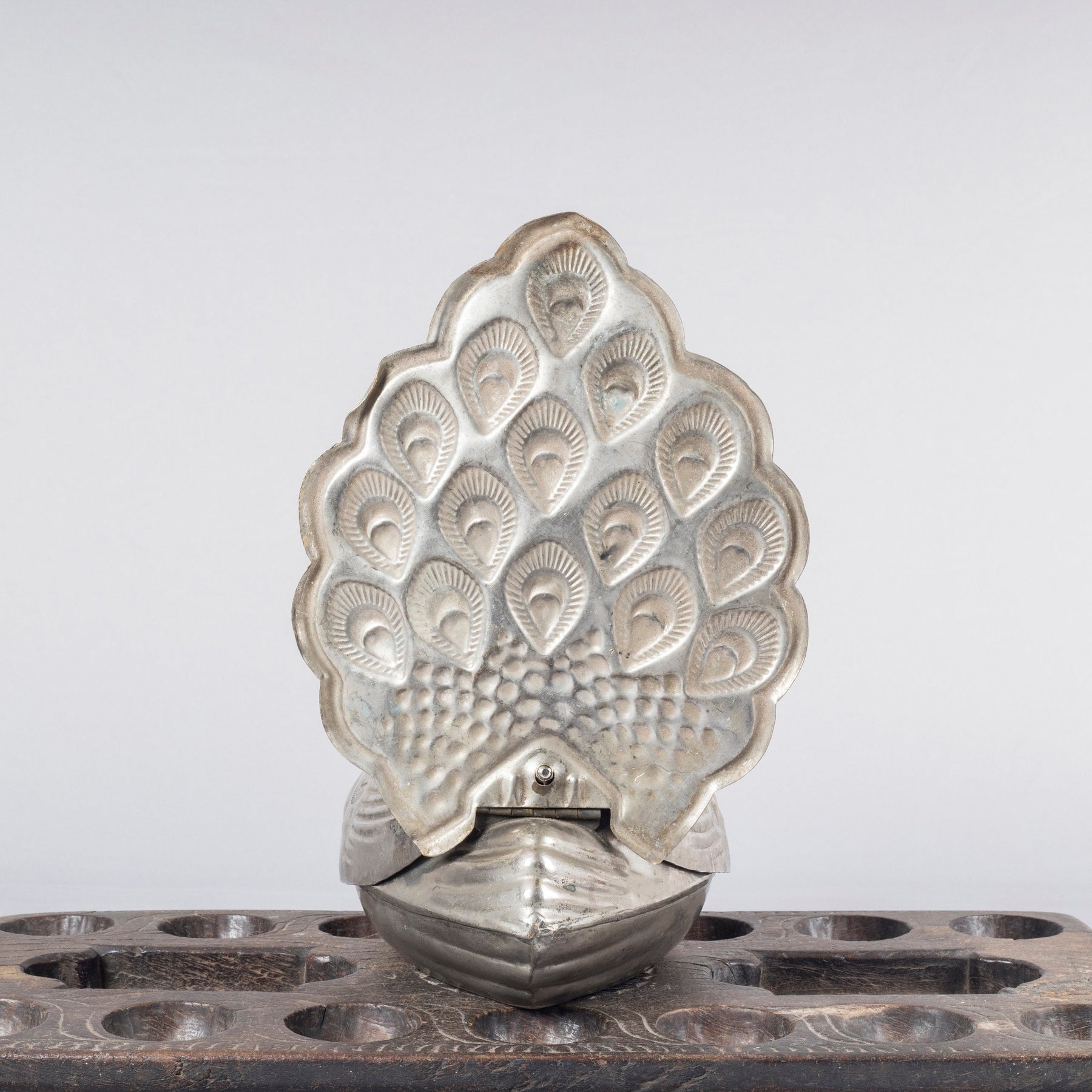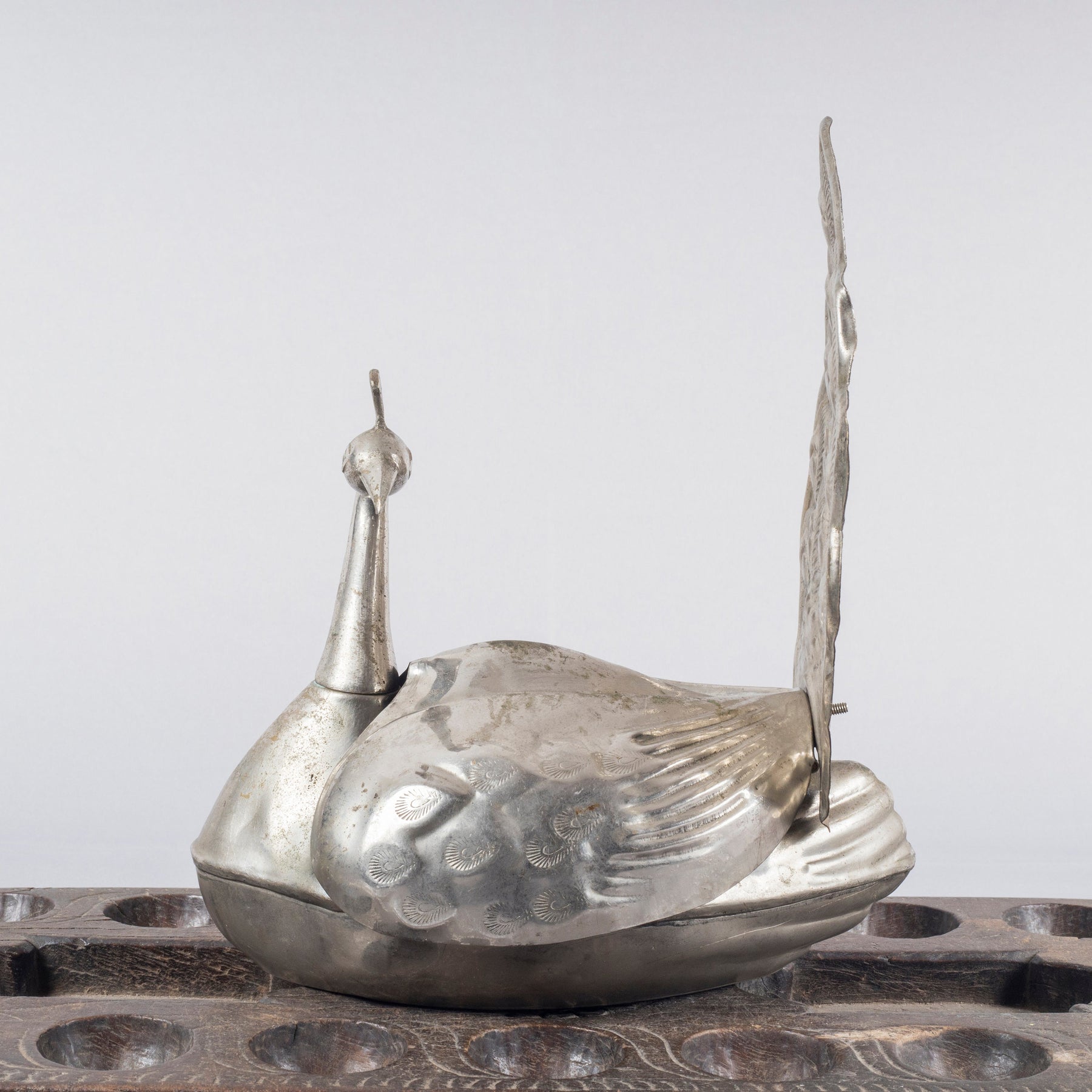 This rare vintage betel box, exquisitely crafted in the form of a peacock, reflects the enduring union of symbolism and function in Indian ritual objects. Traditionally used to store betel leaves and areca nut, such boxes played an important role in domestic hospitality, ceremonial exchange, and social rituals across India.